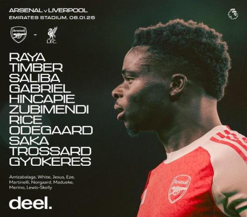 阿森纳首发:1-戴维-拉亚、12-廷贝尔、6-加布里埃尔、2-萨利巴、5-因卡皮耶、36-苏比门迪、41-赖斯、8-厄德高、7-萨卡、19-特罗萨德、14-哲凯赖什 替补:13-凯帕、4-本-怀特、9-热苏斯、10-埃泽、11-马丁内利、16-内尔高、20-马杜埃凯、23-梅里诺、49-刘易斯-斯凯利 利物浦首发:1-阿利松、6-凯尔凯兹、4-范戴克、5-科纳特、12-康纳-布拉德利、38-赫拉芬贝赫、10-麦卡利斯特、8-索博斯洛伊、7-维尔茨、30-弗林蓬、18-加克波 替补:25-马马尔达什维利、28-伍德曼、2-乔-戈麦斯、14-费代里科-基耶萨、17-柯蒂斯-琼斯、26-罗伯逊、42-尼奥尼、47-卡尔文-拉姆齐、73-恩古莫哈