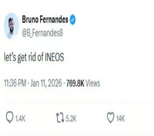 | 在曼联足总杯遭到布莱顿淘汰后,队长布鲁诺·费尔南德斯的社媒账号发出一条惊人的炮轰老板吉姆·拉特克里夫爵士的信息:「干掉英力士!」