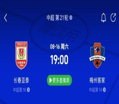 8月16日19:00,中超第21轮,梅州客家将客场挑战长春亚泰。 |