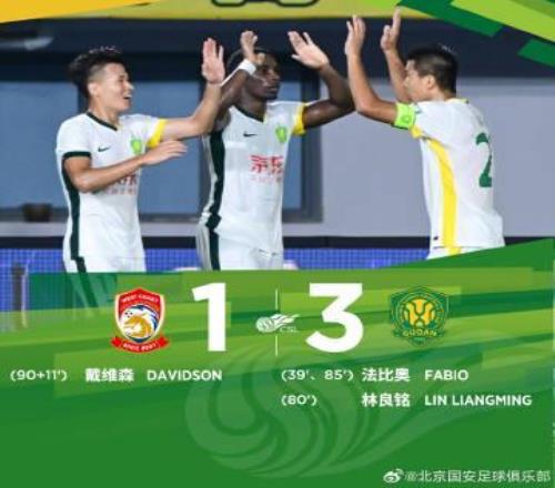 中超联赛第21轮,北京国安客场3比1战胜青岛西海岸