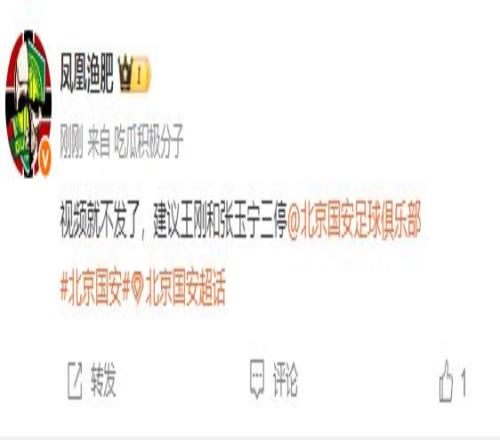网名为凤凰渔肥的球迷表示,“视频就不发了,建议王刚和张玉宁三停。” |