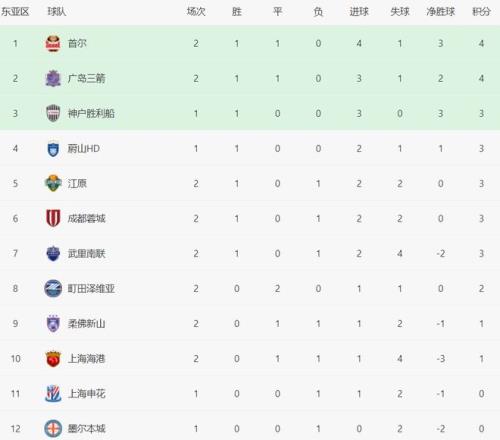 亚冠最新积分战报:成都蓉城创历史,上海海港排名倒数第3