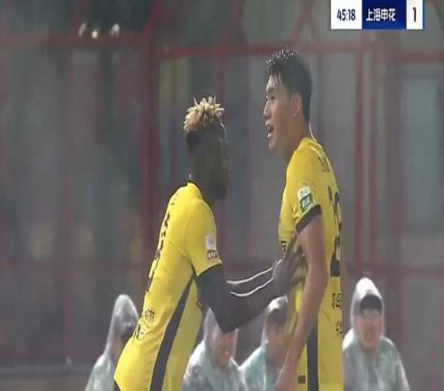 这一丢球,令上海申花如梦初醒,雨中场地湿滑的情况下,申花高举高打,皮球碰了杨希直上直下,李昊出击,吴曦倒地。另一边,何龙海放倒了马纳法。