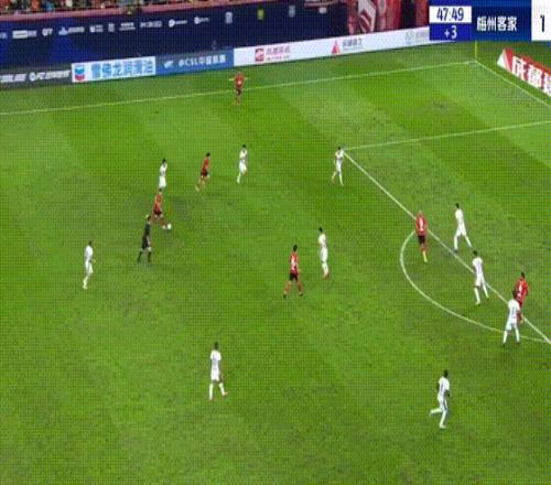 第45+3分钟,罗慕洛拿球连续突破冲出人群,可惜皮球被郭全博先控制住。