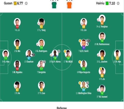 【出场阵容】 北京国安首发: 门将:34-侯森; 后卫:2-吴少聪、3-何宇鹏(70’27-王刚)、4-李磊、5-恩加德乌(F); 中场:7-塞尔吉尼奥(70’21-张源)、8-古加(F)(85’10-张稀哲)、23-达万(F)、17-杨立瑜(61’11-林良铭)、37-曹永竞; 前锋:29-法比奥(F)(85’9-张玉宁); 北京国安替补:39-张健智、6-池忠国、18-方昊、20-王子铭、26-柏杨、30-范双杰、35-江文豪。 青岛海牛首发: 门将:22-韩镕泽; 后卫:4-金洋洋、26-尼古拉-拉德马诺瓦(F)、33-刘佳燊(70’3-刘军帅)、34-金永浩(69’10-冯伯元)、37-韦所为(83’23-宋龙); 中场:6-菲利佩-奥古斯托(F)、7-萨里奇(F)、8-林创益(69’30-车世伟); 前锋:11-韦林顿-席尔瓦(F)、17-买乌郎; 青岛海牛替补:1-刘君、28-牟鹏飞、14-孙正傲、16-李海龙、2-肖鲲、27-郑龙、31-罗森文、19-宋文杰。 |