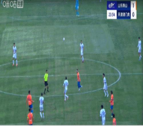 第24分钟,谢维军转身一脚抽射打在顶网上,这也是津门虎上半场唯一的一脚射门。
