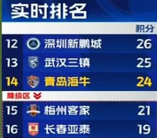 随着海牛队10三镇队,中超积分:亚泰提前降级,梅州客家也悬了