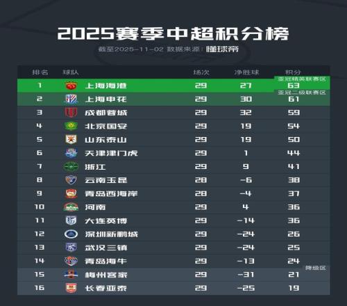 在本轮先进行的两场比赛中,亚泰和梅州均未取胜,因此 目前在仅剩最后一轮的情况下,青岛海牛积24分,领先梅州客家3分。
