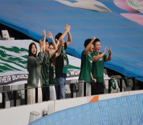 浙江队球迷加油助威。 如果是2比0完赛,山东队就将被淘汰;绝境之下,山东队也被压榨出全部激情,他们在补时阶段打入关键的一个进球,虽然1比2落败,但这个进球帮助山东队以最微弱的总进球数优势,以小组第一的身份晋级。 小组积分榜上,山东、浙江、新疆都积3分,山东队以3个总进球数压倒只有2个总进球数的浙江、新疆队,晋级八强。末轮补时阶段的戏剧性进球直接决定了三队命运,凸显全运会赛场的激烈竞争与不确定性。根据全运会足球项目的规则,浙江队、新疆队将通过抽签的方式,决出最终谁能晋级的结果。
