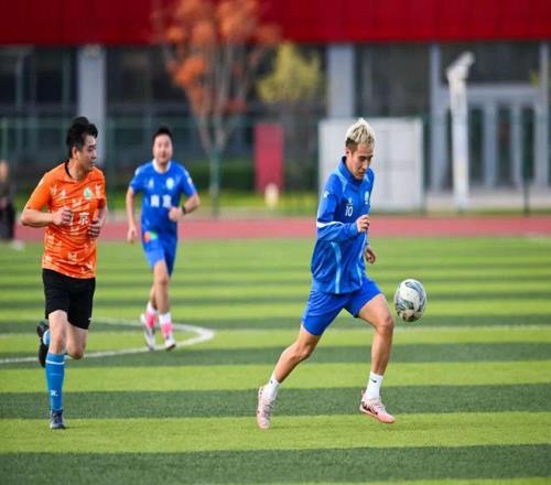 接下来的友谊赛将活动气氛推向高潮,苏超球员与媒体人混编,组成蓝橙两队同场竞技。