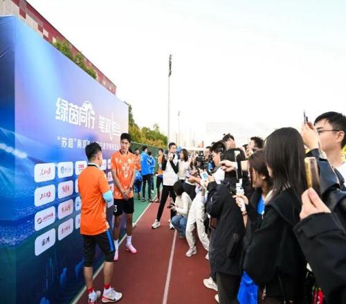 苏超球员与媒体记者们一起