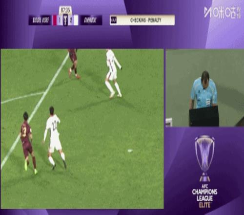 易边再战,蓉城队继续加强进攻!第75分钟,韦世豪左路传中,皮球击打在井手口阳介手臂。裁判回看VAR后,果断判罚点球。费利佩主罚命中,帮助蓉城队2-1反超比分。