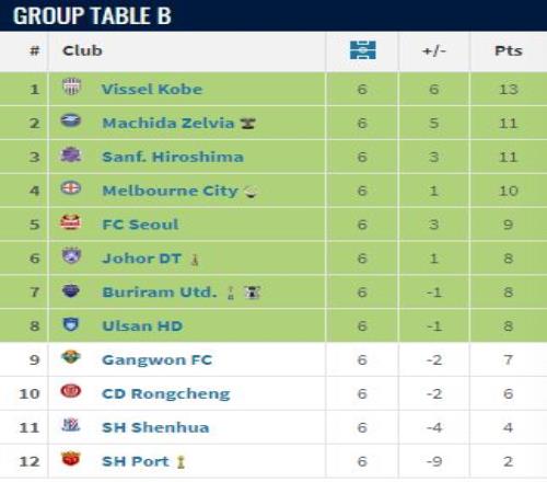 | 在上海申花客场负于广岛三箭之后,蓉城、申花、海港三支中超球队集体在亚冠精英联赛东亚区垫底。其中,上海海港已经几乎失去了晋级淘汰赛的可能。